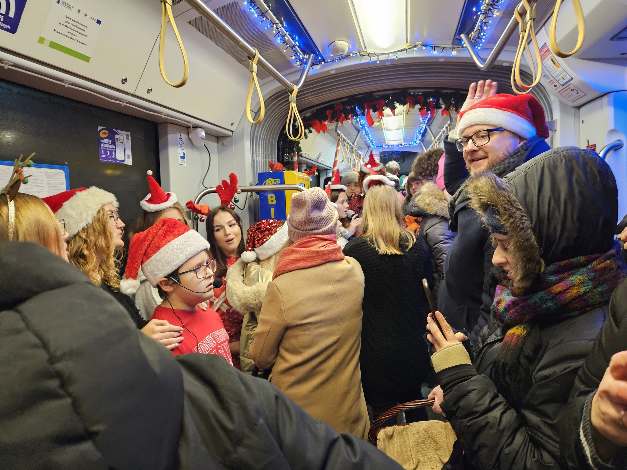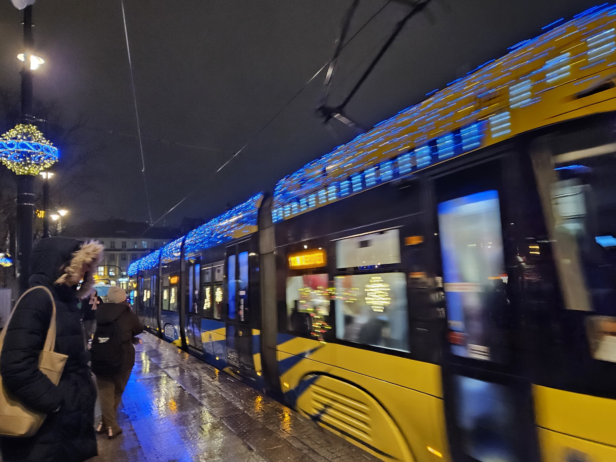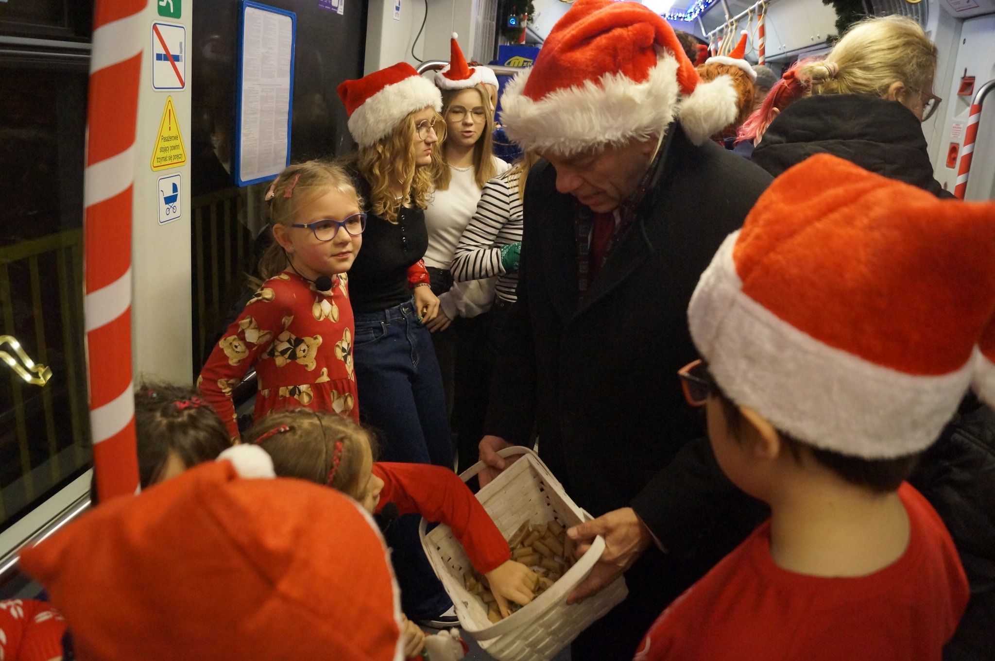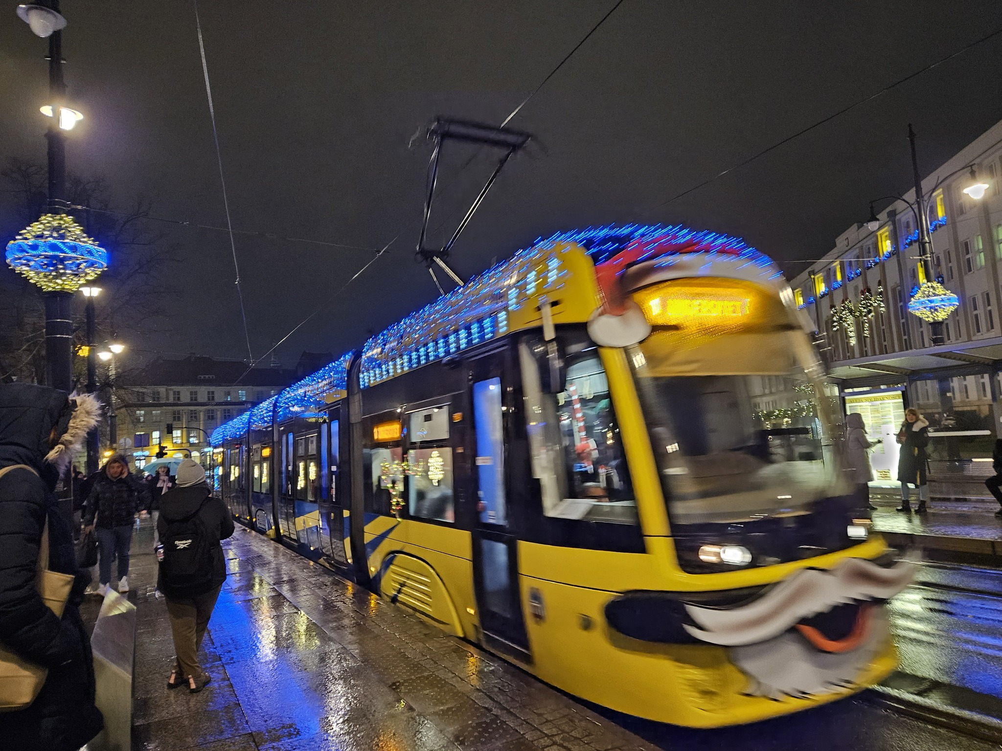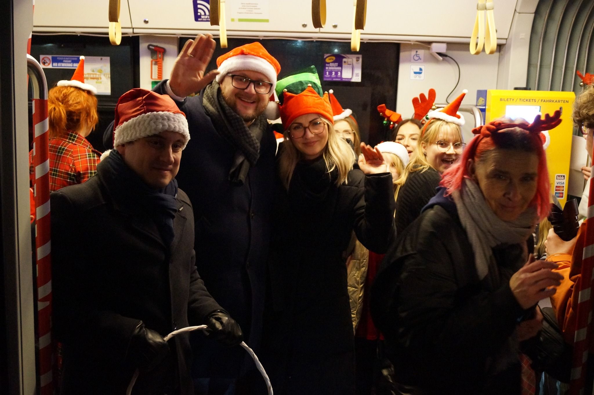 Już jest! Już jeździ! Z tłumem pasażerów, ozdobiony światełkami, w czapce Mikołaja, pełen muzyki, życzeń oraz słodkich i nie tylko upominków – tak pierwszy w tym sezonie kurs odbył świąteczny, iluminowany tramwaj Miejskiego Zakładu Komunikacji.