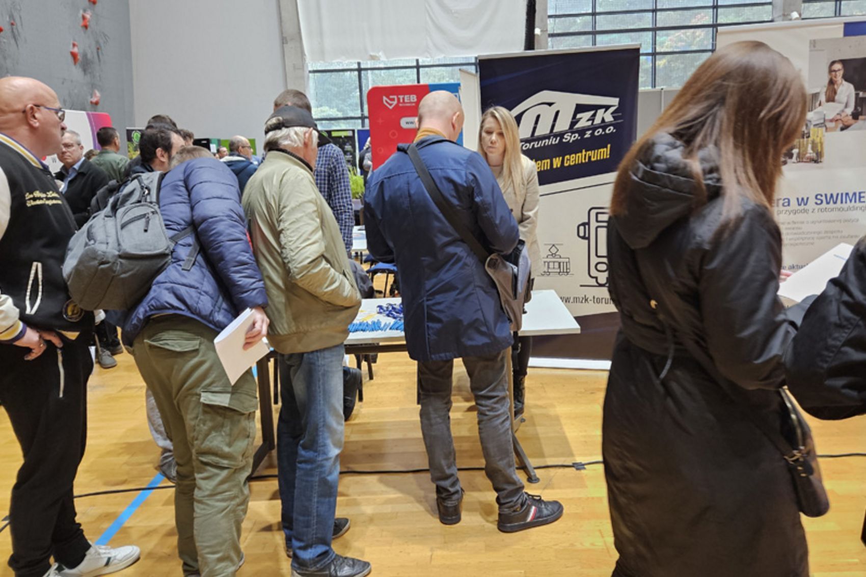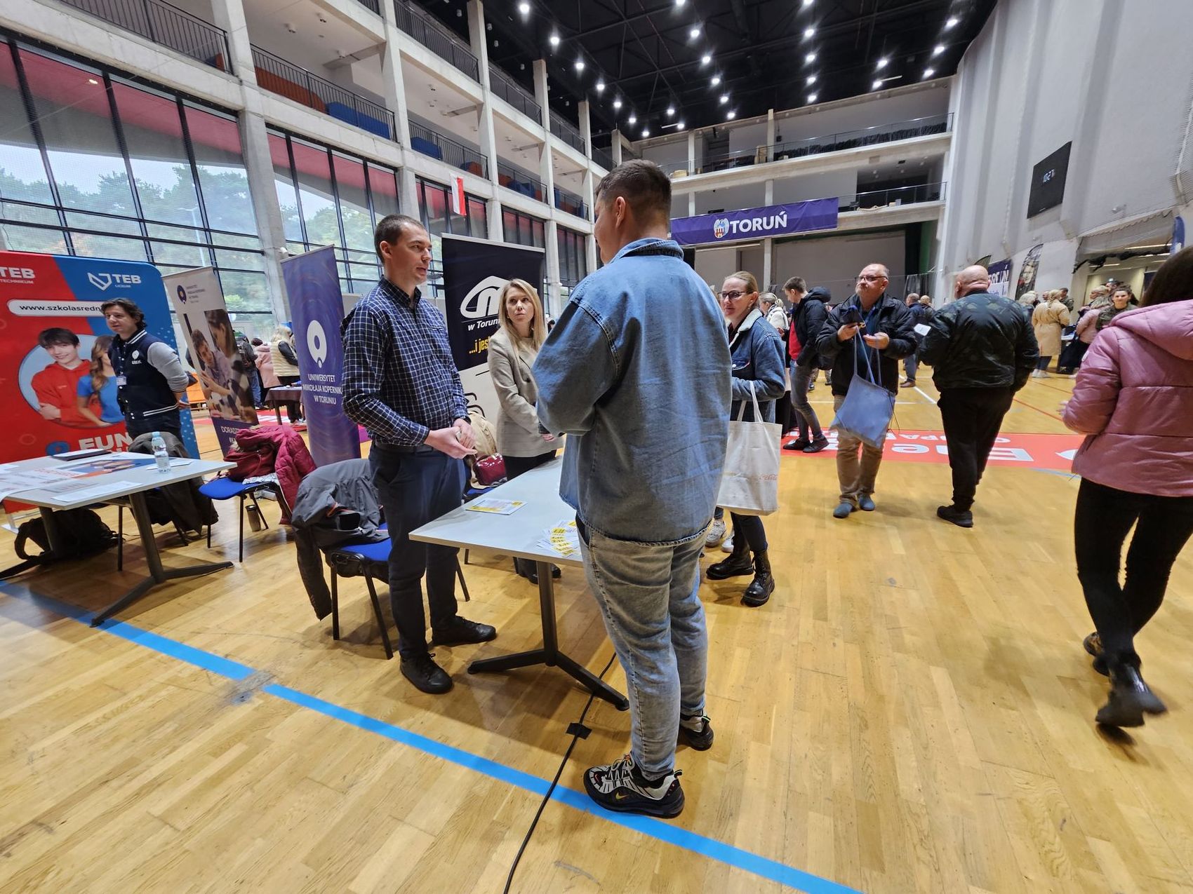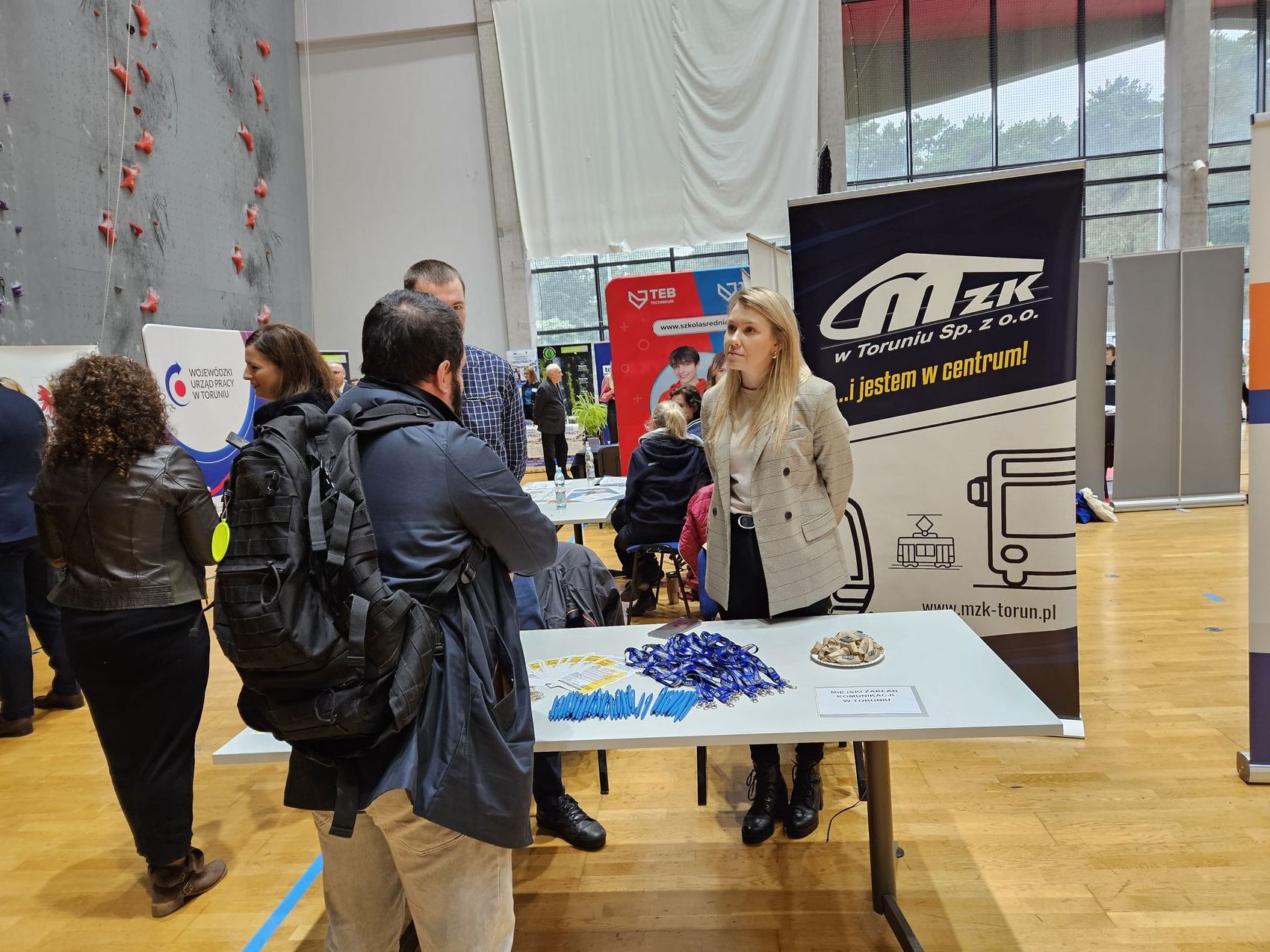 zdjęcie z dwoma pracownikami MZK w Toruniu na stoisku promocyjnym