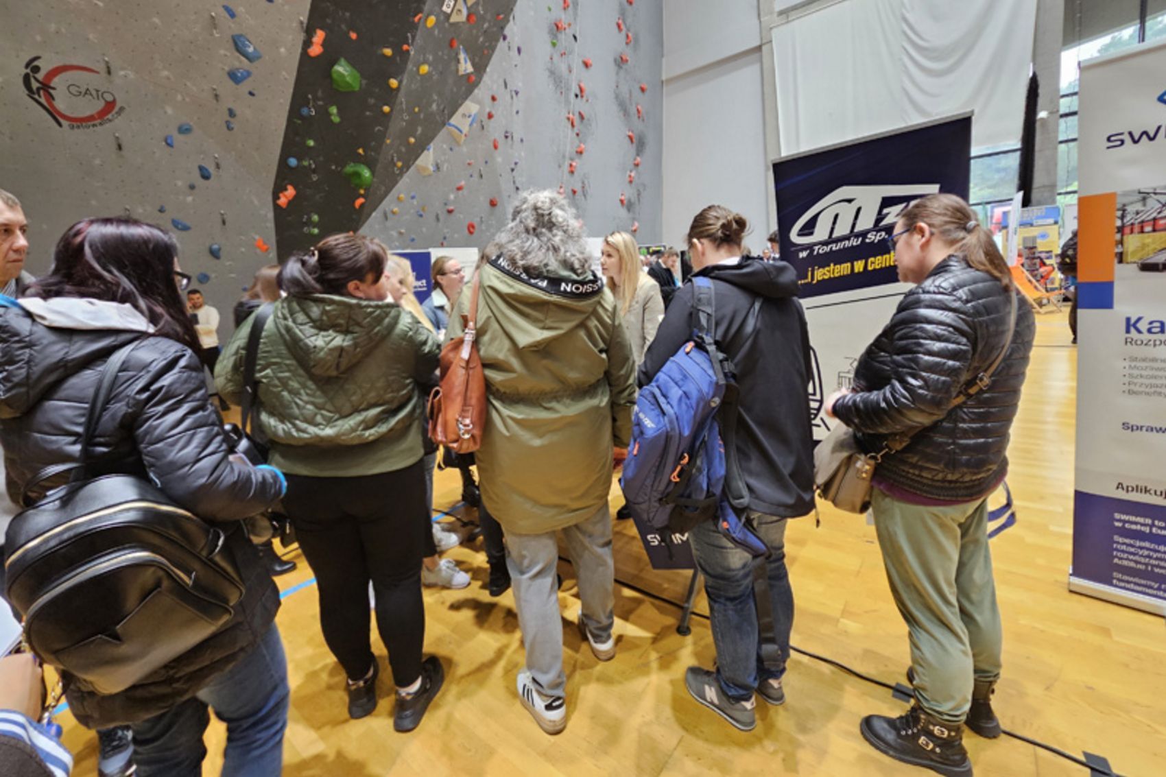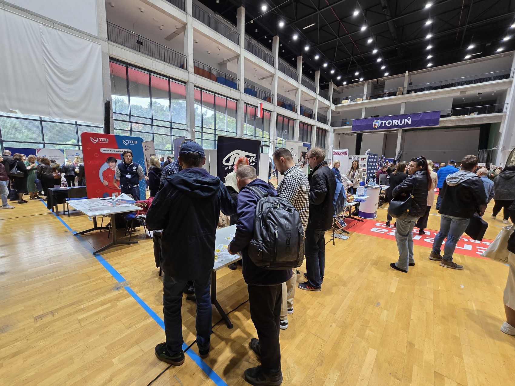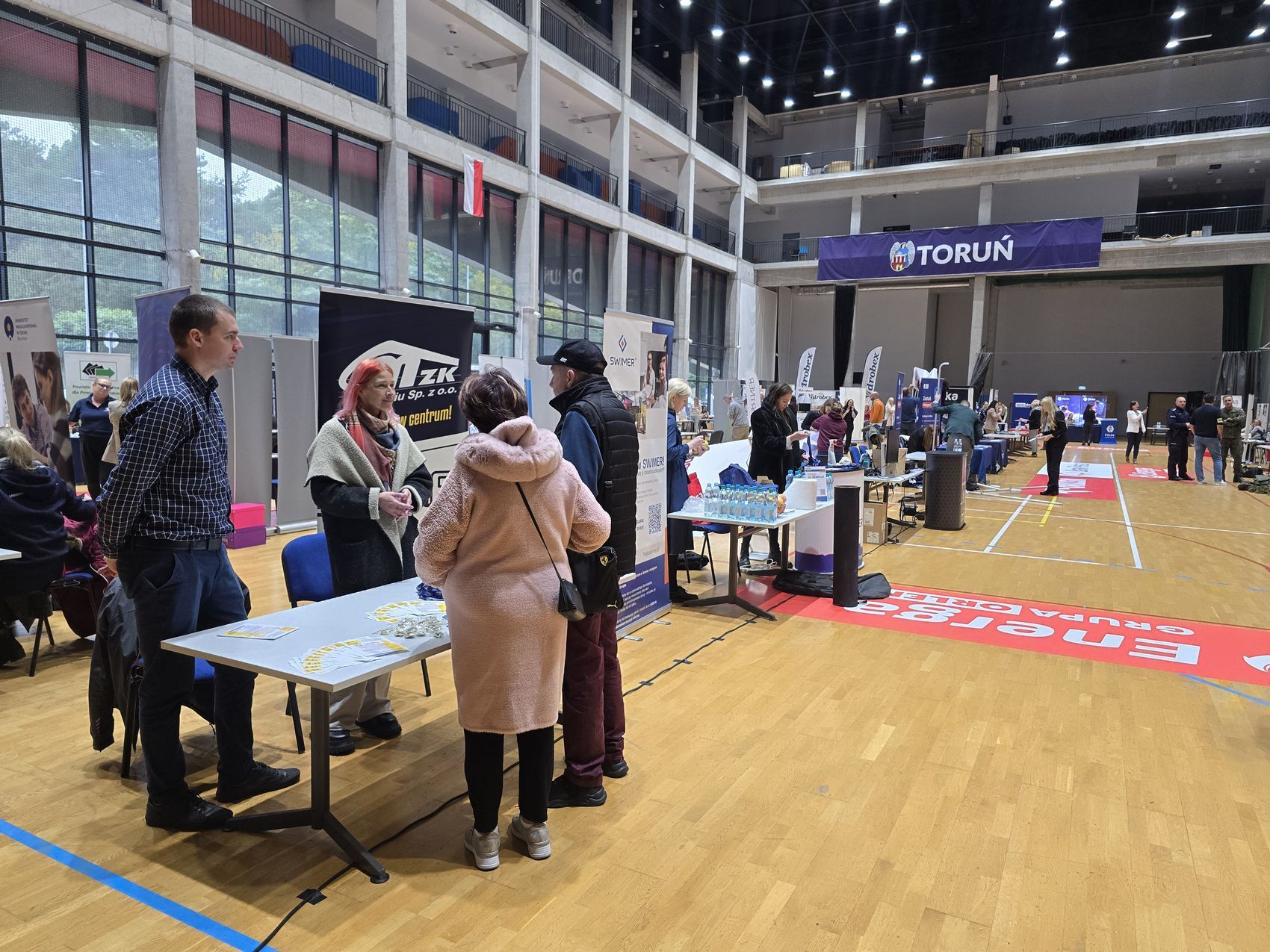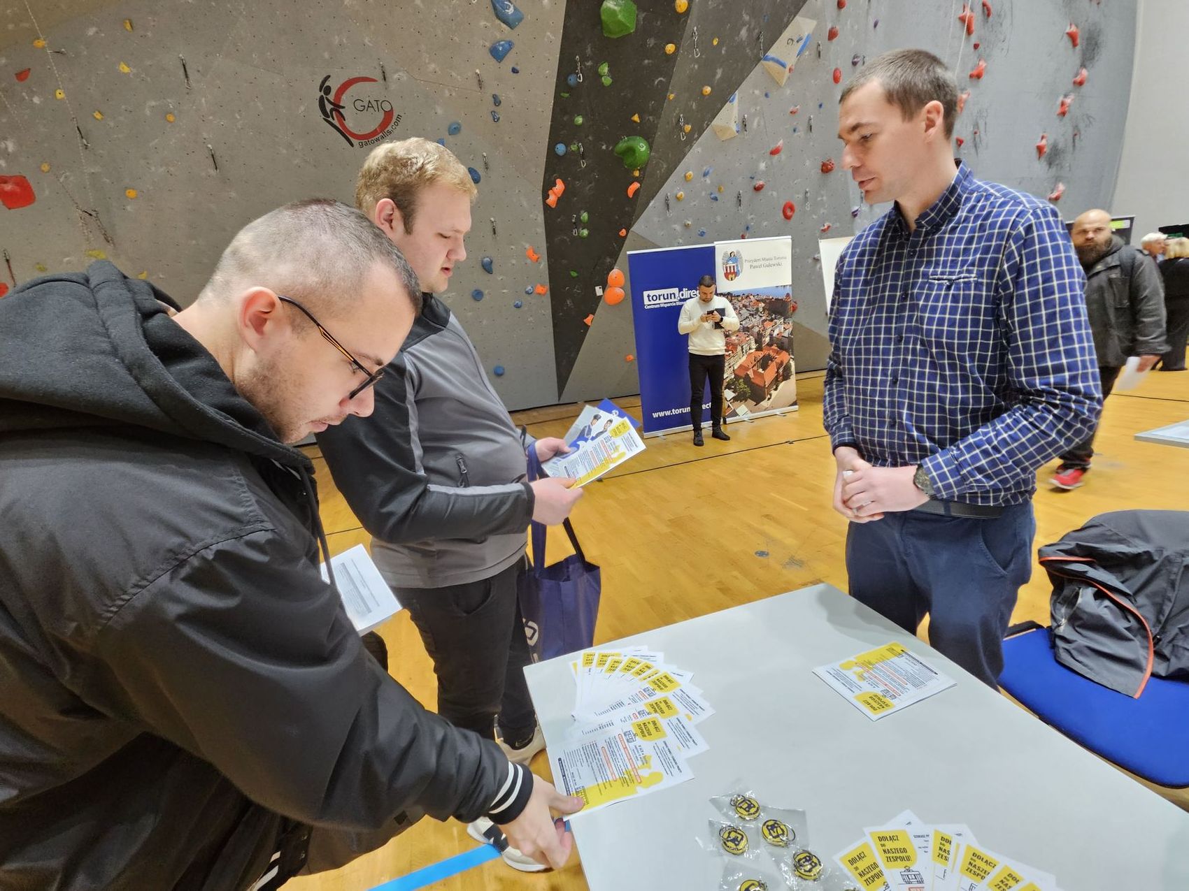 zdjęcie z dwoma pracownikami MZK w Toruniu na stoisku promocyjnym